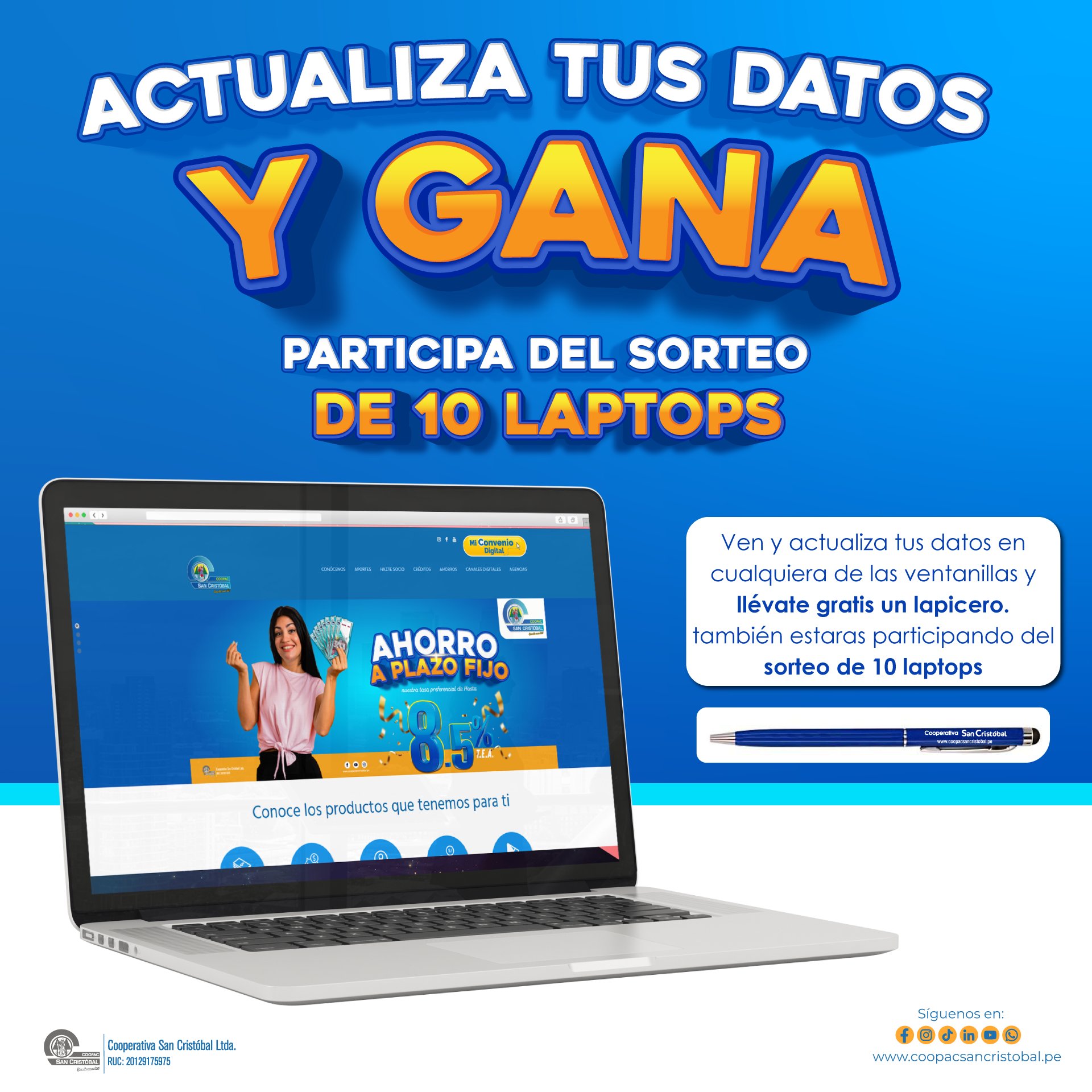 Para acceder a los productos y servicios, usted debe ser socio de la Cooperativa. No captamos recursos del público, solo operamos y captamos recursos de nuestros Socios. Nuestros productos y servicios están sujetos a calificación, admisión y aprobación. Se aplican restricciones. Las tasas, comisiones, gastos y características de los productos y servicios se detallan en nuestra página web: www.coopacsancristobal.pe, en la plataforma de Tasas y Tarifarios, a través del tarifario vigente. Nos encontramos incorporados al Fondo de Seguro de Depósitos Cooperativo (FSDC). Los depósitos de nuestros socios se encuentran cubiertos por el FSDC, siendo el monto máximo de cobertura de hasta S/ 10,000 mil soles.